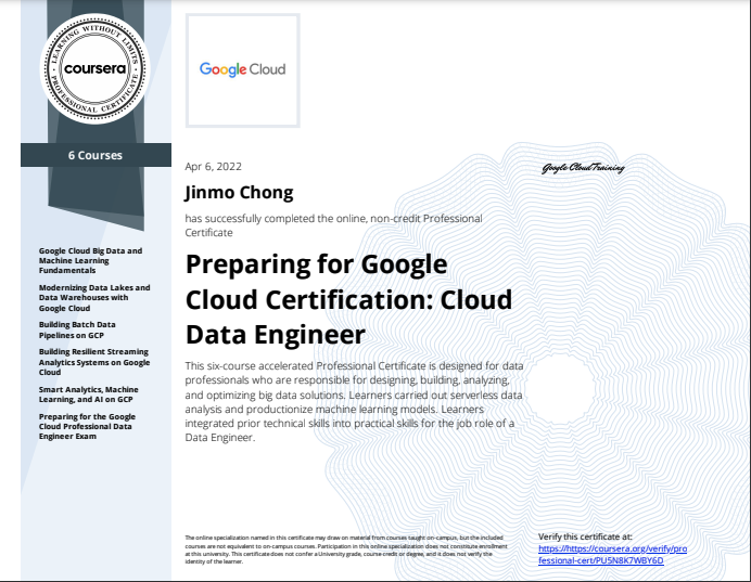 GCP Data Engineer 자격증과 GCP ML Engineer자격증.