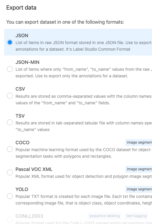 각각의 어노테이션을 다른 형태의 포맷으로 export할 수 있는 장점이 있습니다. (ex. COCO, YOLO 등..)