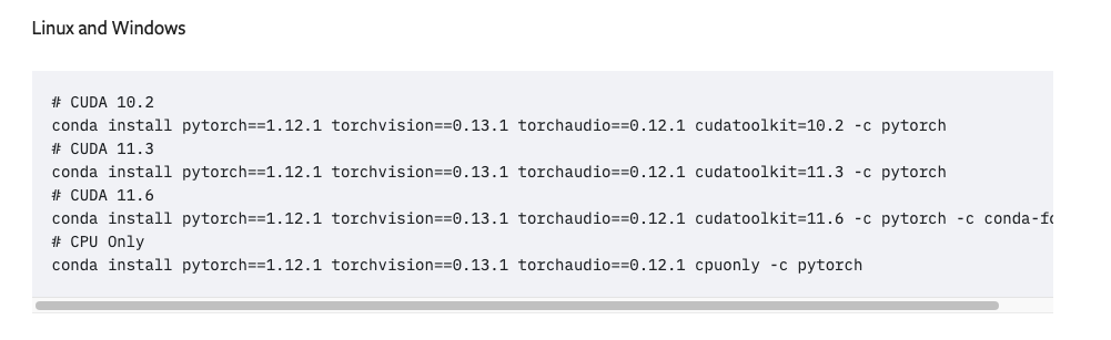 4. pytorch 버전 확인 -> gpt 에 의하면 나의 환경에 맞는 pytorch는 1.12.1 이라고 한다. 왠지는 잘 모르겠지만..