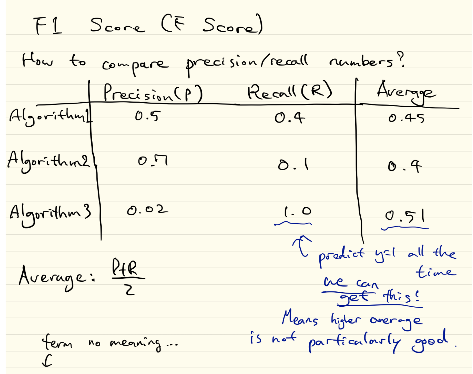 그럼 왜 F1 score는 recall과 precision의 평균을 사용하지 않을까요?