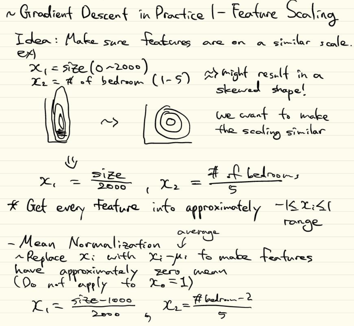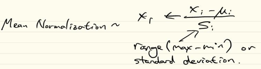 Mean Normalization은 평균값으로 빼주고, (최대값 - 최소값)으로 나눠줌으로써