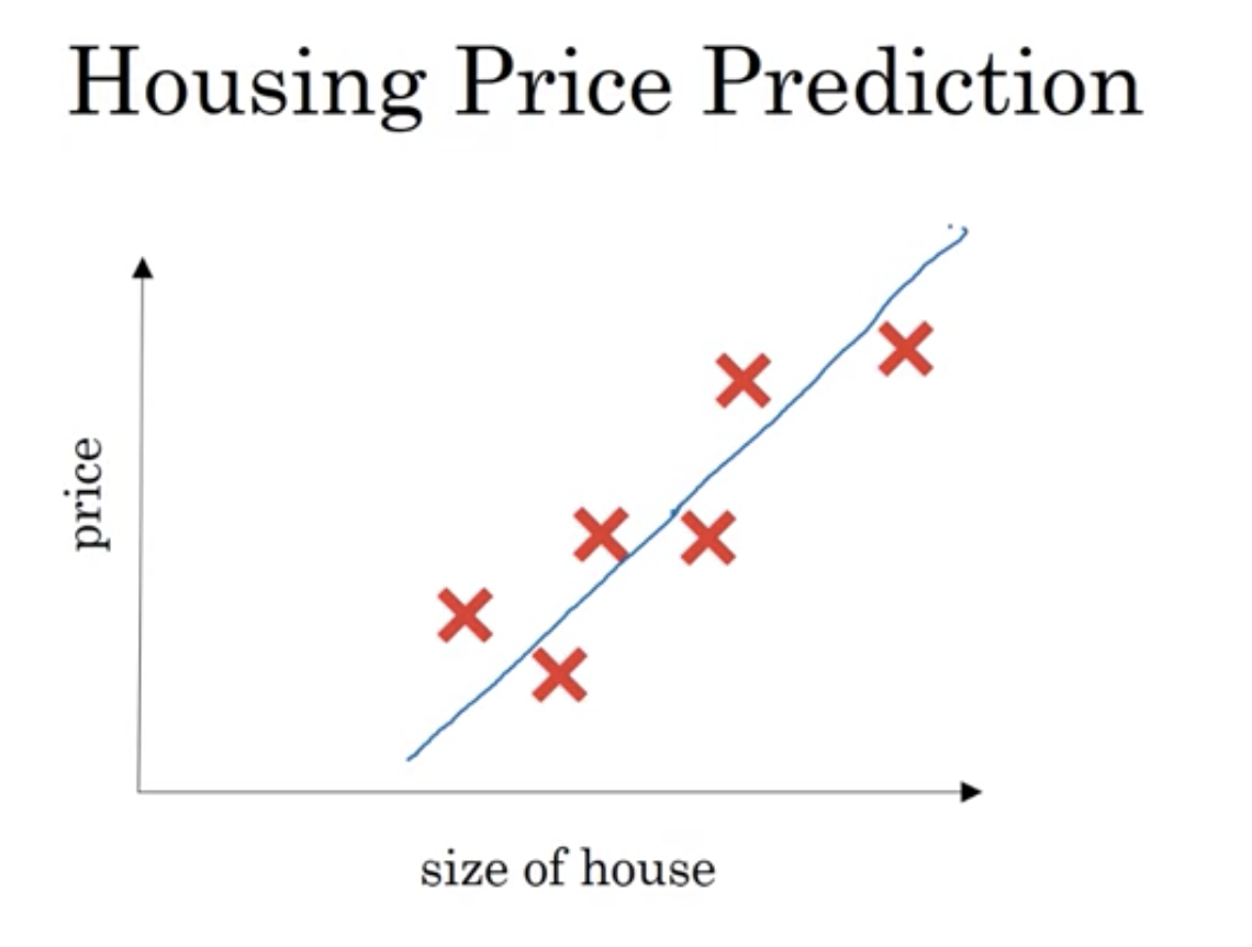 Housing Price Prediction에서 보면, linear Regression의 형태로 이루어지는 걸 볼 수 있습니다.